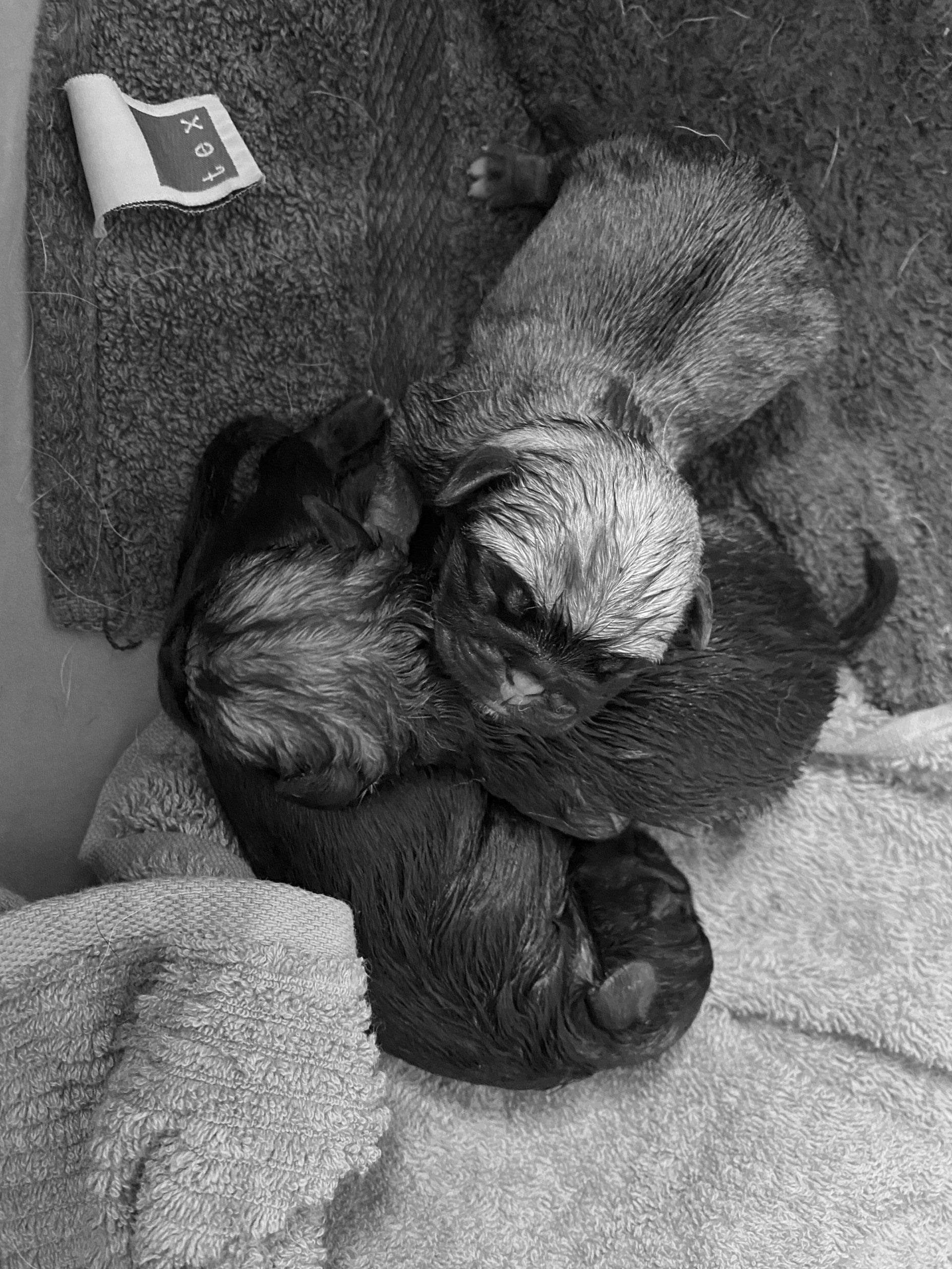 Briano wurde an fünfter Stelle geboren und war 245g schwer. Baila war die drittschwerste und kam als letzte. Wir hatten uns abgesprochen, dass ich den Anfang mache und sie als letzte kommt und kontrolliert, ob die Jungs alle raus sind.