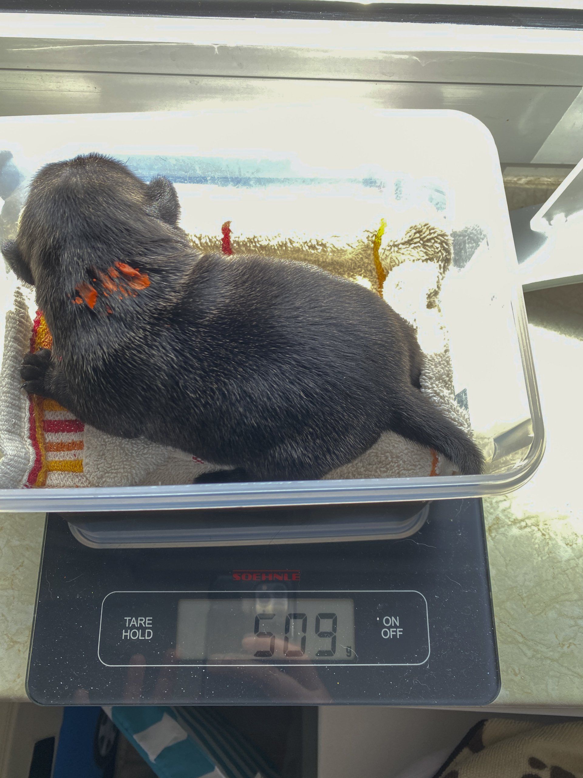 Heute Morgen beim täglichen Wiegen hat Briano die 500g Marke überschritten und ist damit offiziell „ein Pfund Hund“.