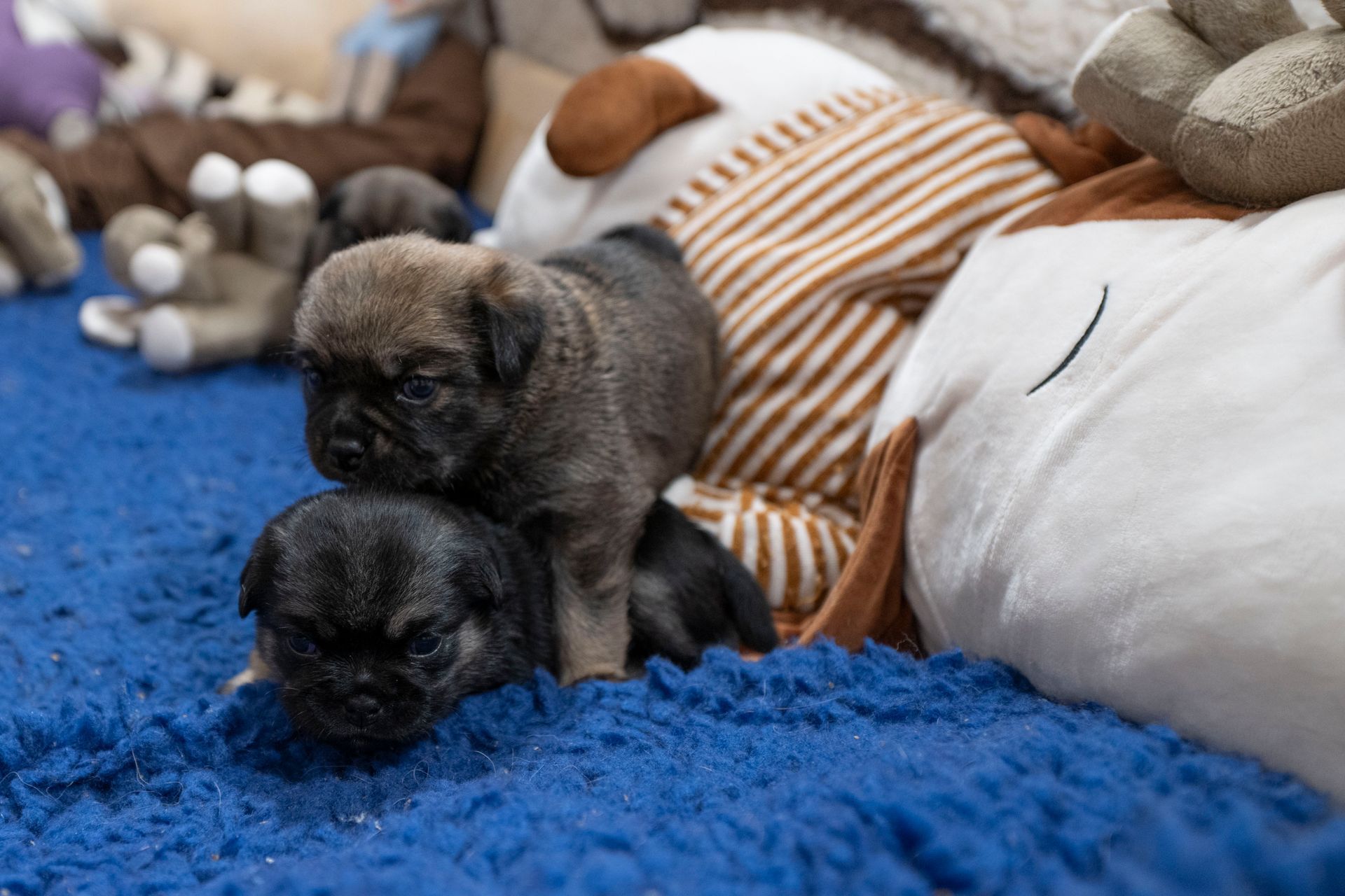 Im Internet hatte ich vor ein paar Tagen die Idee mit der Schaukel für Welpen gefunden und machte mich gleich heute daran es auszuprobieren. Wie immer bei Fotosessions, dauerte das Zusammensuchen der Utensilien wie Stativ, Schaukeltuch, Aufhängevorrichtung, Tuch für den Hintergrund und das anschließende Auswählen und Bearbeiten der Bilder etc. etc., viel viel viel länger, als das eigentliche Machen der Bilder. Vor Beginn dachte ich, dass die Welpen sicher nicht glücklich über mein Vorhaben sein würden. Damit lag ich jedoch komplett falsch. Sie liebten die Schaukel, legten sich sofort bequem hin und schlossen die Augen zum Schlafen. Es war mega süß. Seht selbst.