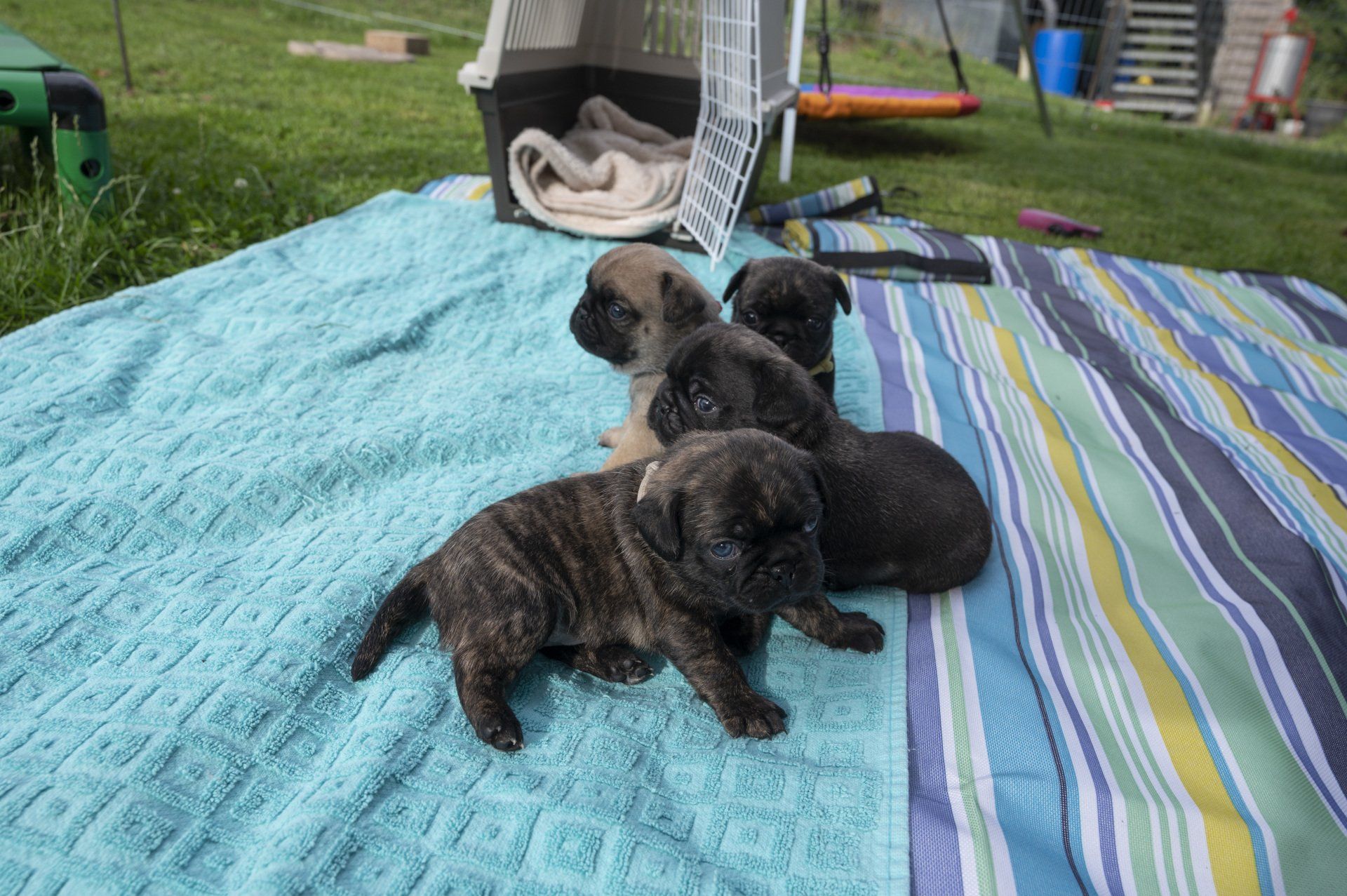 Im Internet hatte ich vor ein paar Tagen die Idee mit der Schaukel für Welpen gefunden und machte mich gleich heute daran es auszuprobieren. Wie immer bei Fotosessions, dauerte das Zusammensuchen der Utensilien wie Stativ, Schaukeltuch, Aufhängevorrichtung, Tuch für den Hintergrund und das anschließende Auswählen und Bearbeiten der Bilder etc. etc., viel viel viel länger, als das eigentliche Machen der Bilder. Vor Beginn dachte ich, dass die Welpen sicher nicht glücklich über mein Vorhaben sein würden. Damit lag ich jedoch komplett falsch. Sie liebten die Schaukel, legten sich sofort bequem hin und schlossen die Augen zum Schlafen. Es war mega süß. Seht selbst.