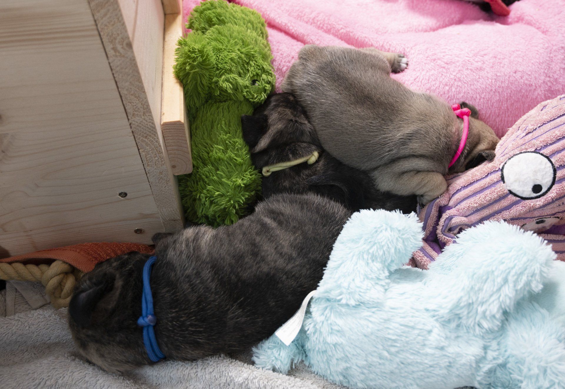 Im Internet hatte ich vor ein paar Tagen die Idee mit der Schaukel für Welpen gefunden und machte mich gleich heute daran es auszuprobieren. Wie immer bei Fotosessions, dauerte das Zusammensuchen der Utensilien wie Stativ, Schaukeltuch, Aufhängevorrichtung, Tuch für den Hintergrund und das anschließende Auswählen und Bearbeiten der Bilder etc. etc., viel viel viel länger, als das eigentliche Machen der Bilder. Vor Beginn dachte ich, dass die Welpen sicher nicht glücklich über mein Vorhaben sein würden. Damit lag ich jedoch komplett falsch. Sie liebten die Schaukel, legten sich sofort bequem hin und schlossen die Augen zum Schlafen. Es war mega süß. Seht selbst.